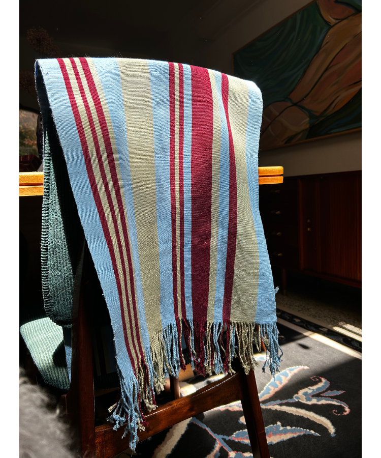 Como Chalina / Rebozo: Su suavidad y tejido firme permiten llevarla sobre los hombros, convirtiéndola en un accesorio de moda artesanal atemporal.
