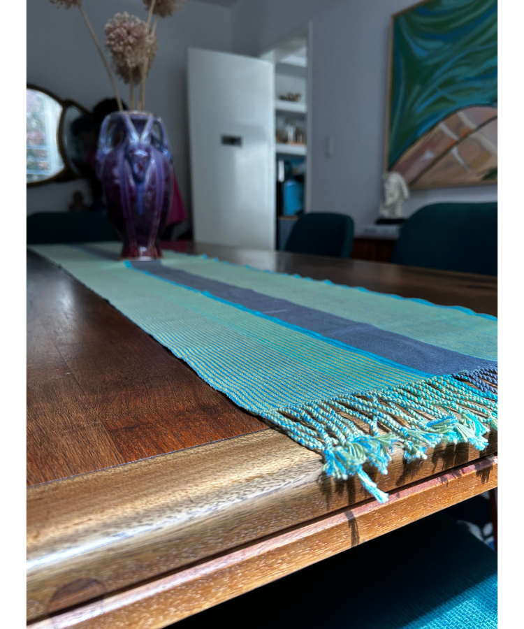 >>Camino de mesa Turquesa y Gris de algodón