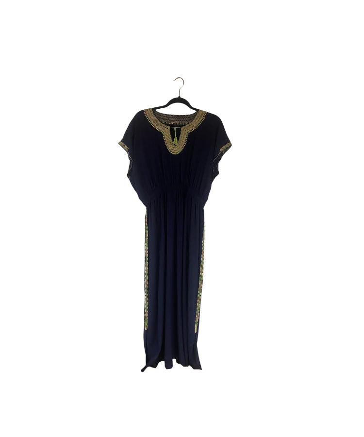 Vestido largo, super fresco, ligero, sin mangas, bordado cuidadosamente por artesanas de Chamula, Chiapas.